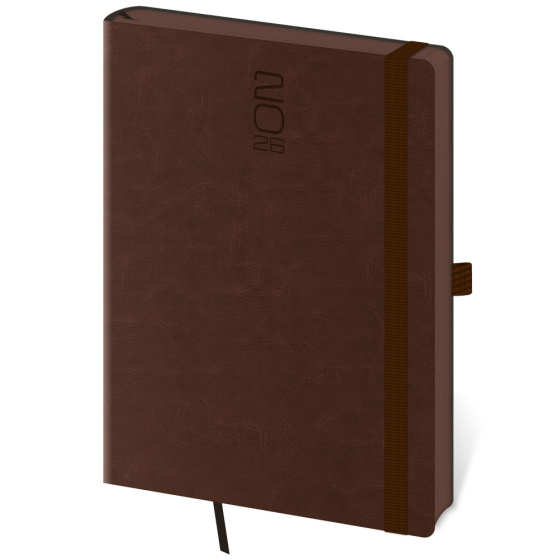Popis Diár 2026 týždenný A5 Memory s gumičkou - tmavo hnedá