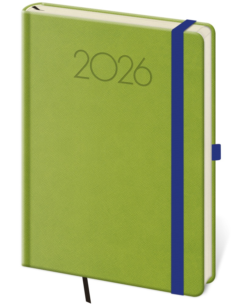 Diár je vyrobený zo zaujímavej matnej koženky s nepravidelnou štruktúrou, navyše je doplnený o gumičku na uzavretie v kontrastnej farbe. Vzhľadom na štruktúru materiálu je vhodná na sleporazbu bez fólie, neodporúčame však raziť drobné texty, ktoré môžu pri razbe zaniknúť. Diár obsahuje: osobné údaje, plánovač dovolenky (mesačný prehľad), plánovací kalendár, telefónne predvoľby, štátne sviatky Českej a Slovenskej republiky, medzinárodné sviatky, ročný výhľad, týždenný layout, adresár, mapa Európy a Českej a Slovenskej republiky Formát diára: 145 x 205 mm Rozsah diára: 128 strán Kalendárium: týždenný + pútko na ceruzku + papier bloku chamois
