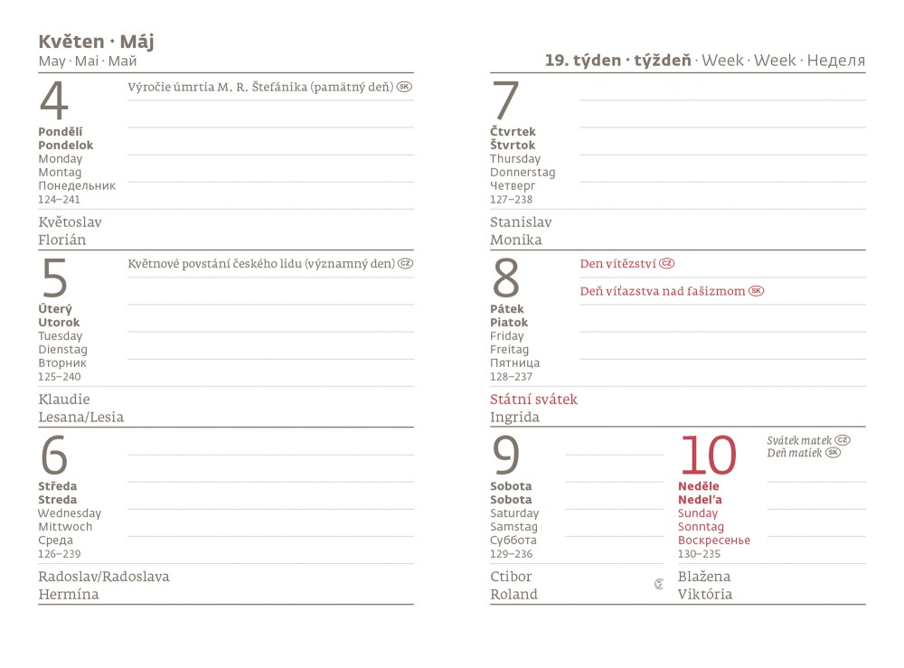 Obľúbené originálne dizajnové diáre vynikajú doskami, ktoré sú upravené špeciálnou lamináciou s hodvábnym efektom, vďaka ktorej sú veľmi príjemné na dotyk. Odporúčame tampónovú tlač. Diár obsahuje: osobné údaje, plánovací kalendár, ročný výhľad, týždenný layout, adresár Formát diára: 71 x 105 mm Rozsah diára: 128 strán Kalendárium: týždenný vreckový Materiál: lamino mat, soft touch