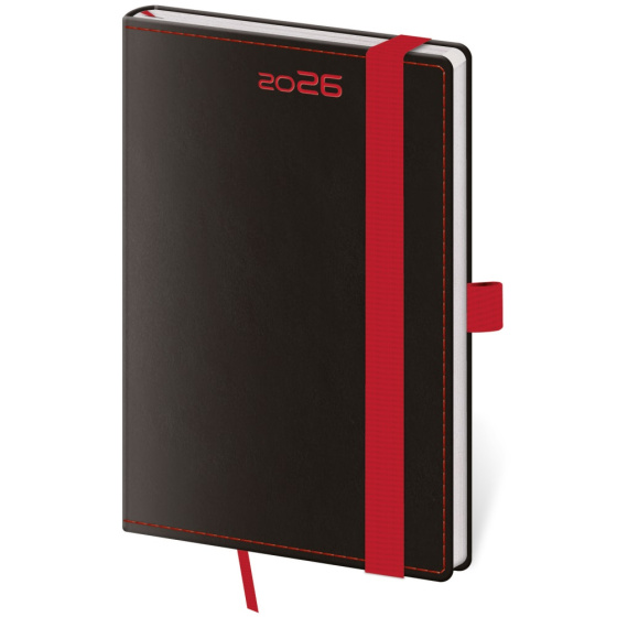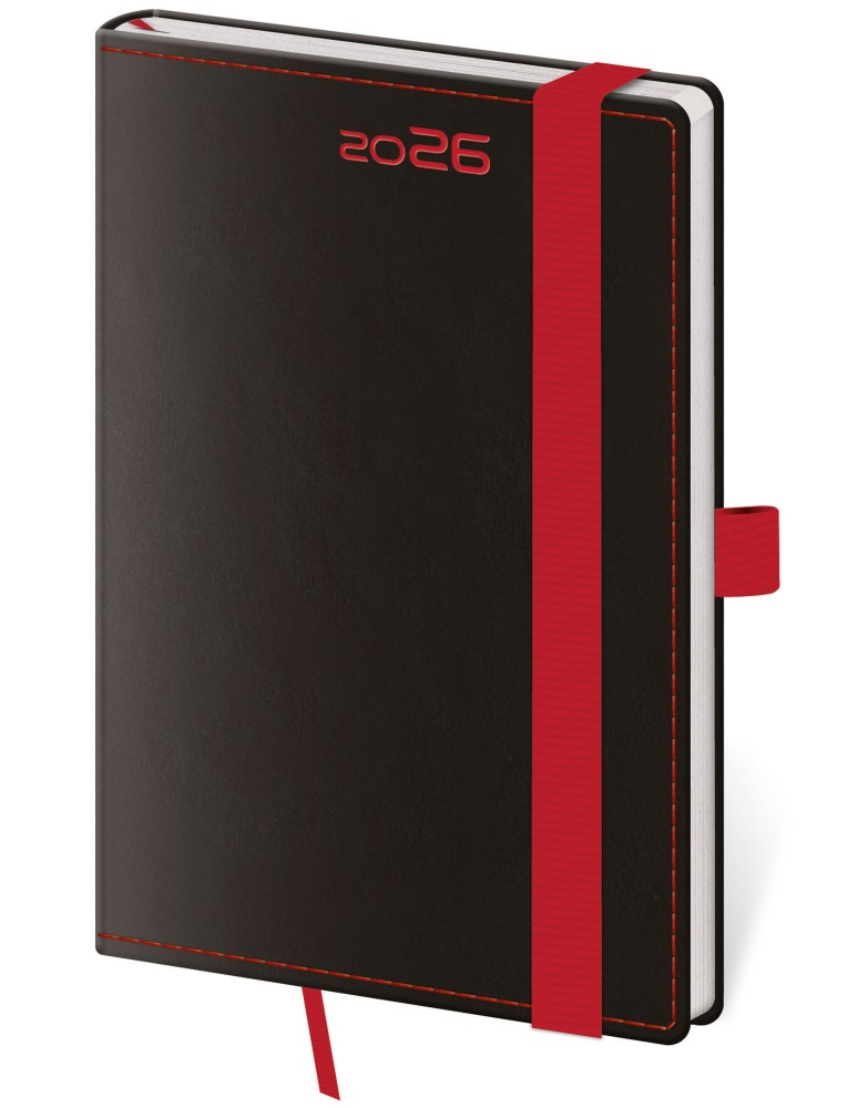 Popis Diár 2026 týždenný vreckový Black Red s putkom na pero