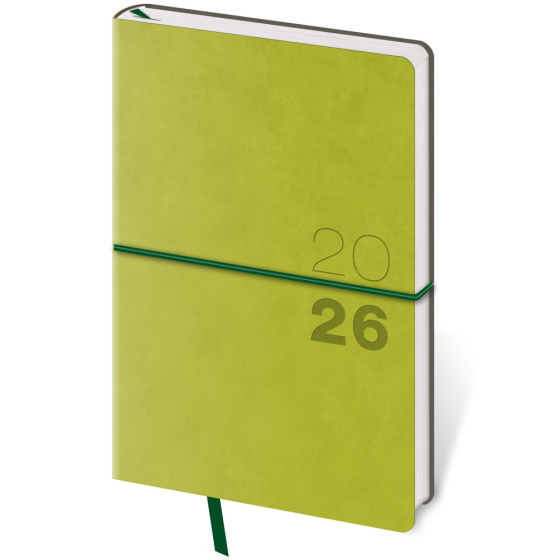 Moderný diár v mäkkej ohybnej väzbe s guľatou priečnou gumičkou cez chrbát predstavuje najnovší spôsob spracovania. Diár je príjemný do ruky vďaka matnej koženke a ľahký vďaka mäkkým doskám. Materiál dosiek sa hodí na sleporazbu, ktorá na koženke vynikne. Diár obsahuje: osobné údaje, plánovač dovolenky (mesačný prehľad), plánovací kalendár, medzinárodné sviatky, ročný výhľad, týždenný layout, adresár Formát diára: 90 x 140 mm Rozsah diára: 128 strán Kalendárium: týždenné vreckové
