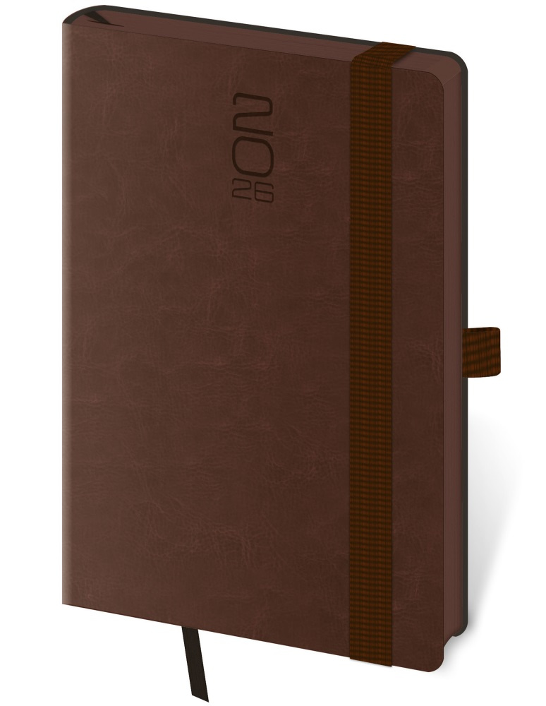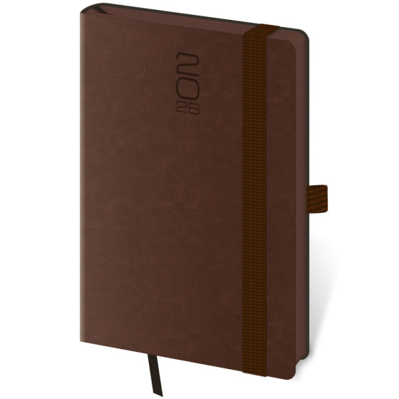 Popis Diár 2026 týždenný vreckový Memory s gumičkou - tmavo hnedá