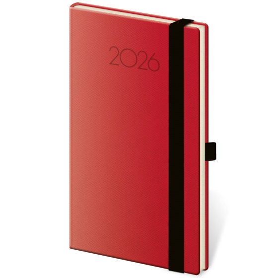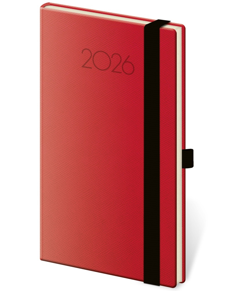 Diár je vyrobený zo zaujímavej matnej koženky s nepravidelnou štruktúrou, navyše je doplnený o gumičku na uzavretie v kontrastnej farbe. Vzhľadom na štruktúru materiálu je vhodná na sleporazbu bez fólie, neodporúčame však raziť drobné texty, ktoré môžu pri razbe zaniknúť. Diár obsahuje: osobné údaje, plánovač dovolenky (mesačný prehľad), plánovací kalendár, medzinárodné sviatky, ročný výhľad, týždenný layout, adresár Formát diára: 90 x 140 mm Rozsah diára: 128 strán Kalendárium: týždenný vreckový + pútko na ceruzku + papier bloku chamois