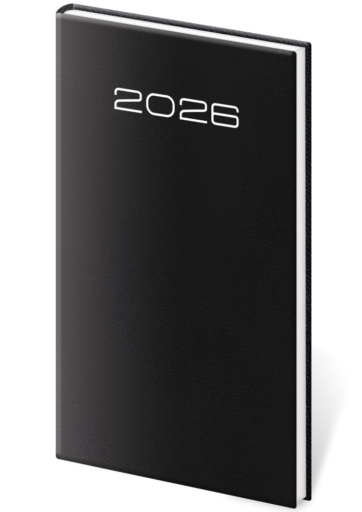 Povrch diára je vyrobený z univerzálneho materiálu na báze zušľachteného papiera, ktorý vďaka svojej jemnej štruktúre získava vzhľad koženky. Odporúčame razbu cez fóliu, prípadne potlač povrchu sieťotlačou. Diár obsahuje: osobné údaje, plánovač dovolenky (mesačný prehľad), plánovací kalendár, medzinárodné sviatky, ročný výhľad, týždenný layout, adresár Formát diára: 80 x 150 mm Rozsah diára: 128 strán Kalendárium: týždenné vreckové