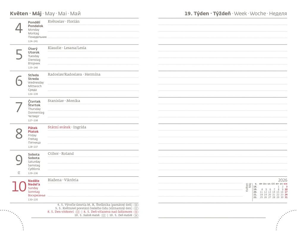 Obľúbené originálne dizajnové diáre vynikajú doskami, ktoré sú upravené špeciálnou lamináciou s hodvábnym efektom, vďaka ktorej sú veľmi príjemné na dotyk. Odporúčame tampónovú tlač. Diár obsahuje: osobné údaje, plánovač dovolenky (mesačný prehľad), plánovací kalendár, medzinárodné sviatky, ročný výhľad, týždenný layout, adresár Tvorcom dizajnu dosiek je svetoznáma módna návrhárka Blanka Matragi. Táto elegantná edícia diárov sa vyznačuje nádhernými plnými farbami, vzletnými vzdušnými motívmi a optickými iluzionistickými prvkami designu dosiek. „Nikdy som nebola typom človeka, ktorý tvorí pre seba. Potrebujem výzvy, impulzy. Reakcia ľudí! Tie mi dodávajú optimizmus, nabíjajú ma energiou na prekonávanie prekážok. Nezastavovať sa. Nazakrnět, nezaseknúť sa v tom, čo už človek dokázal a čo funguje. Kým dýcham, chcem ísť ďalej.“ Blanka Matragi Formát diára: 90 x 140 mm Rozsah diára: 128 strán Kalendárium: týždenný vreckový Autor: Blanka Matragi