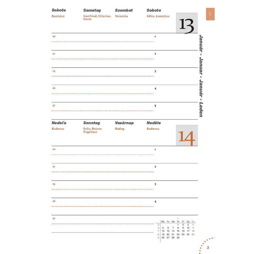 Diár vo formáte A5 / názvoslovie v slovenskom, českom, maďarskom a nemeckom jazyku.