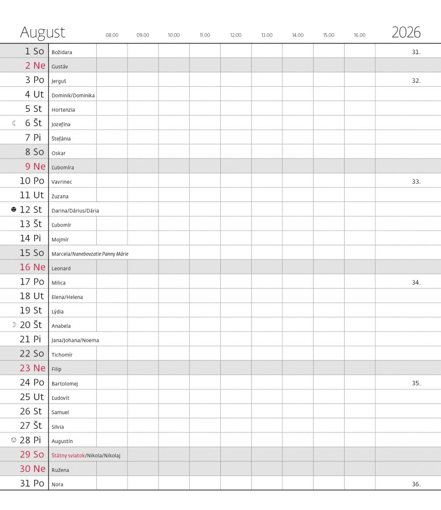 Oblúbený laminovaný povrch príjemný na dotyk, prinášame v úplne novej grafickej úprave. Formát: 77 x 178 mm • Rozsah: 32 strán • Kalendárium: mesačné slovenské menné
