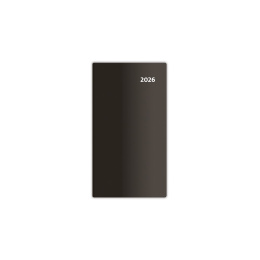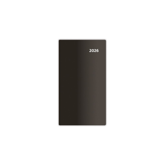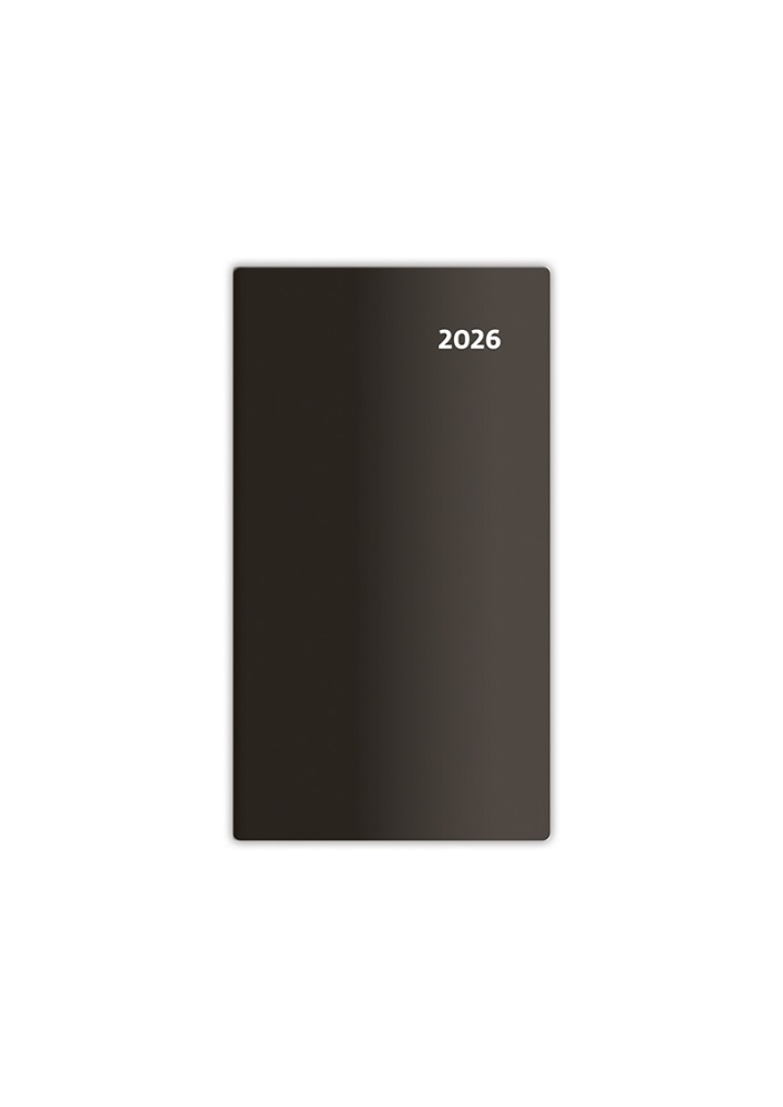 Tradičné celoplastové prevedenie vreckových diárov. Farebná paleta zahrňuje tri klasické odtiene. Formát: 85 x 154 mm • Rozsah: 80 strán • Kalendárium: dvojtýždňové slovenské menné