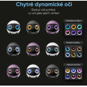Dva digitálne displeje nahrazujúce oči dodávajú EBO Air 2 Plus osobnosť a emócie. Používatelia si môžu nastaviť farbu, štýl aj animácie, čím prispôsobia vzhľad robota svojej nálade alebo prostrediu. Oči reagujú na rôzne situácie – napríklad pri hovore, nabíjaní alebo pohybe – a vytvárajú živý, priateľský dojem. Vďaka tomu pôsobí EBO Air 2 Plus nielen ako inteligentný prístroj, ale aj ako skutočný člen domácnosti.