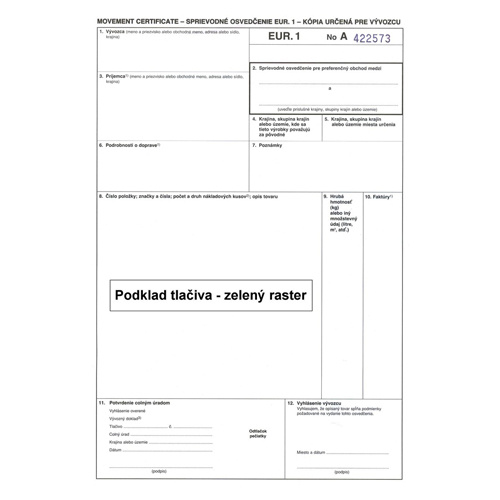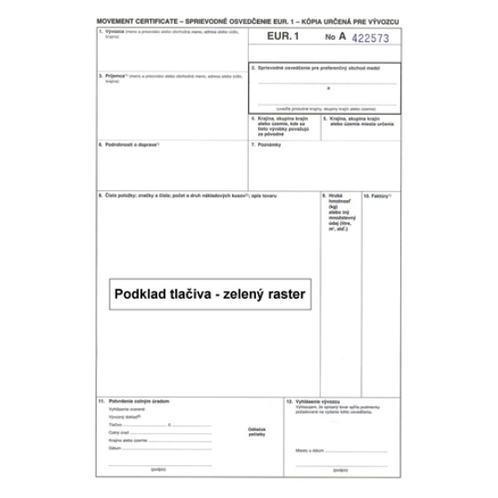 EUR 1 Spriev. osvedčenie A4, samopr., 3 listy (272)