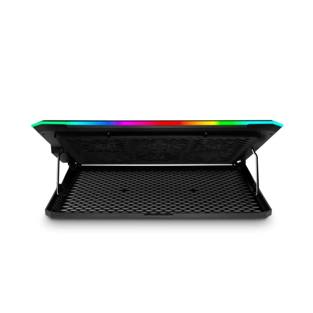 K účinnému chlazení notebooku přidává tato podložka i stylový vizuální efekt. Obvodové hrany podstavce i ventilátory jsou totiž vybaveny barevným RGB podsvícením. Na výběr máte hned několik režimů s různými barvami nebo jejich střídáním – můžete si tak zvolit styl, který se nejlépe hodí k vaší herní výbavě, náladě či atmosféře dané hry.