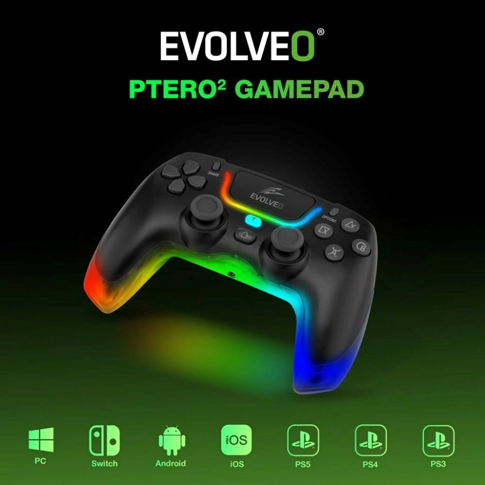 Chcete si podmanit svět videoher a mít osudy virtuálních hrdinů pevně ve svých rukou? V tom případě je tady EVOLVEO Ptero2 právě pro vás. Tento gamepad je jako švýcarský nůž pro hráče. V jednom kompaktním celku totiž spojuje výhody několika zařízení. Navíc může fungovat bezdrátově i s kabelem. A rozumí si s celou řadou platforem, od PC přes mobily až po PlayStation.
