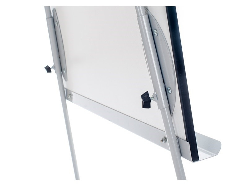 Flipchart s magnetickým povrchom. Flipchart má bočné flipové lišty na zavesenie potrebných materiálov...