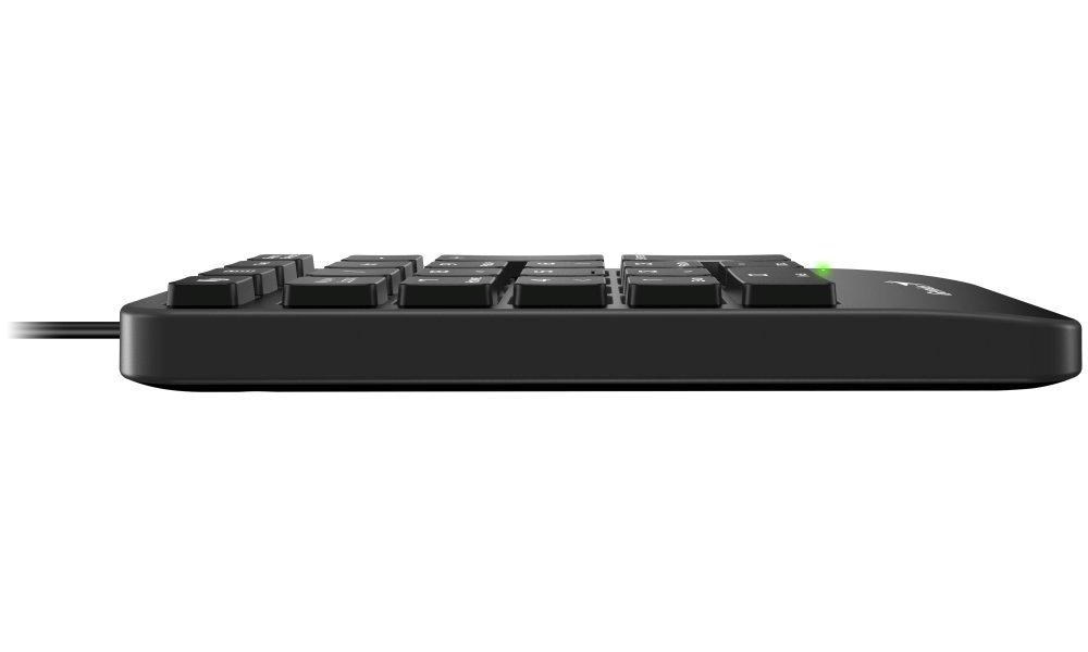 Drátová numerická klávesnice ve slim provedení s vylepšenou strukturou kláves, která snižuje hlučnost. Ergonomický design s opěrkou dlaně poskytuje pohodlné používání. K dispozici jsou také klávesy jako Copilot, tabulátor, backspace a kalkulačka pro rychlejší a efektivnější práci. Pro použití ji stačí připojit k portu USB-C.
