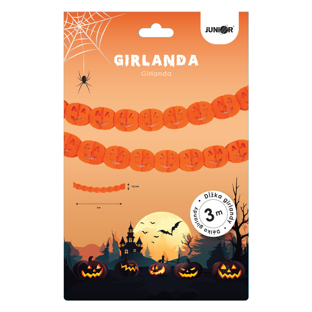 Girlanda Veselá tekvica na strašidelnú noc Halloween.Po roztiahnutí vznikne trojrozmerná dekorácia s veľkými tekvicami.