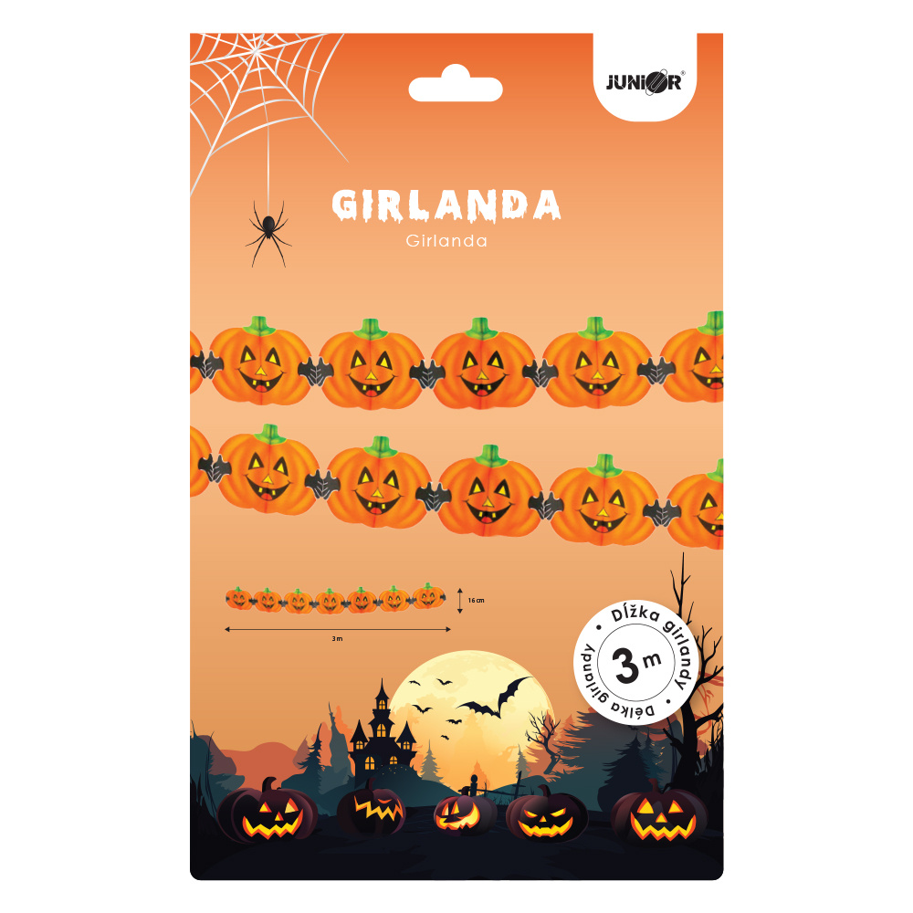 Girlanda Veselá tekvica na strašidelnú noc Halloween.Po roztiahnutí vznikne trojrozmerná dekorácia s veľkými tekvicami.