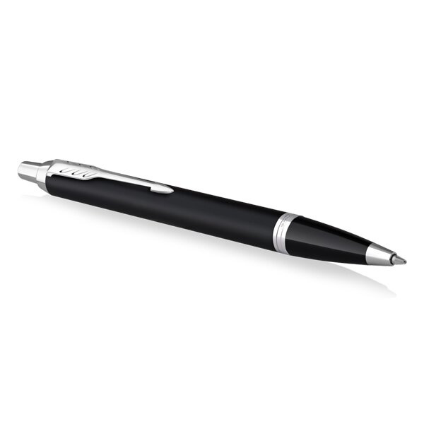 Čierne guličkové pero Parker IM Essential má mosadzné telo s matnou lakovanou povrchovou úpravou. V kombinácii s doplnkami pokovovanými chrómom.