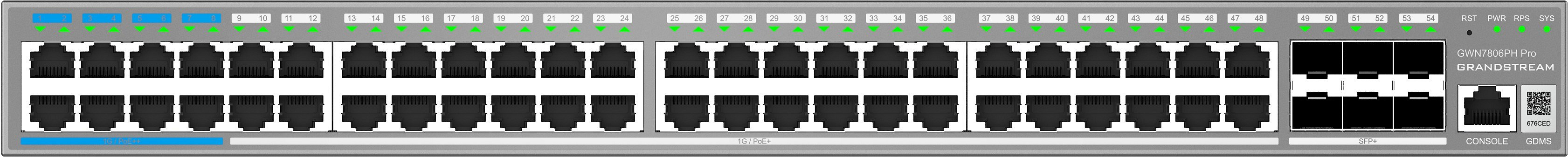 Popis Grandstream GWN7806PH Pro Layer 2++ Managed Network switch, 48x Gb RJ45 PoE