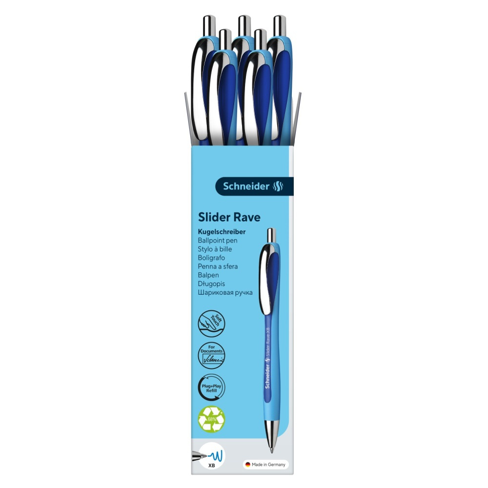 Guľôčkové pero Schneider Slider Rave s Viscoglide® technológiou pre hladké a kĺzavé písanie.