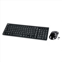 - set bezdrôtovej klávesnice a myši pre zadávanie údajov do PC/Notebooku - optický senzor s vysokým rozlíšením pre presný a plynulý pohyb - tiché tlačidlá umožňujú tichú a nerušenú prácu - klávesnica – plný formát s plochými klávesmi - 2.4 GHz technológia pre spoľahlivý a nerušený prenos signálu - dosah až do 8 m - Smart-Link technológia pre rýchle pripojenie - nie je potrebný žiadny dodatočný softvér – jednoducho pripojte a spustite - USB-pripojnie - SK/CZ layout Systémové požiadavky: - operačný systém: Windows 10/8.1/8/7/Vista Technické parametre: - pripojenie: USB-A vidlica - počet tlačidiel myši: 3 - počet kláves na klávesnici: 103 - rozmery myši: 6,5 x 3,6 x 10,4 cm - rozmery klávesnice: 37,9 x 2,1 x 13,6 cm - hmotnosť myši: 65 g - hmotnosť klávesnice: 338 g Obsah balenia: - bezdrôtová klávesnica - bezdrôtová myš - prijímač - 2x AAA batérie - 2x AA batérie - návod na použitie.
