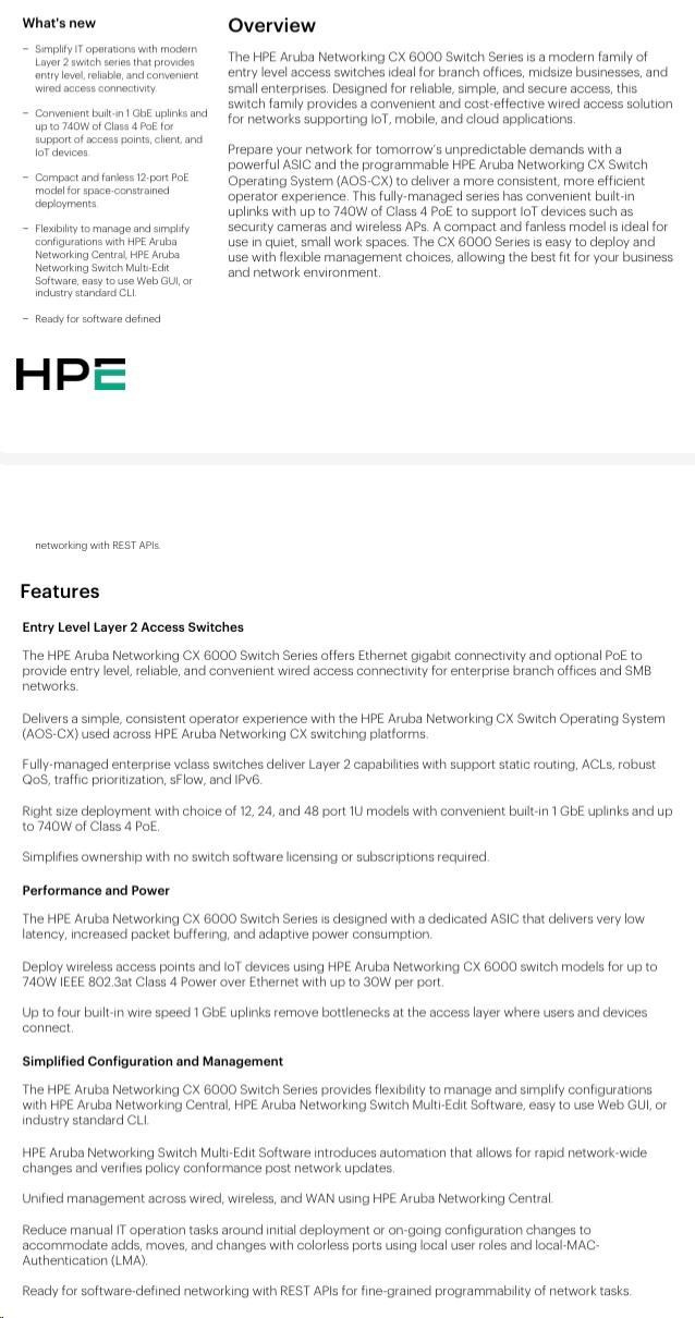 HPE Aruba Networking CX 6000 12G Class4 PoE