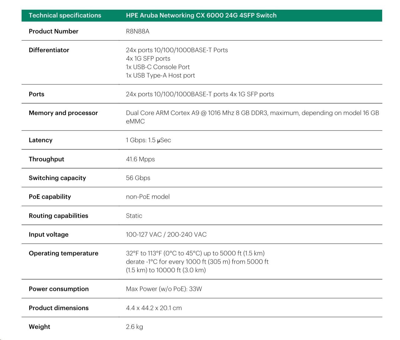 HPE Aruba Networking CX 6000 8p 10M/100M/1G Class4 PoE 2p SFP 1G 67W Switch