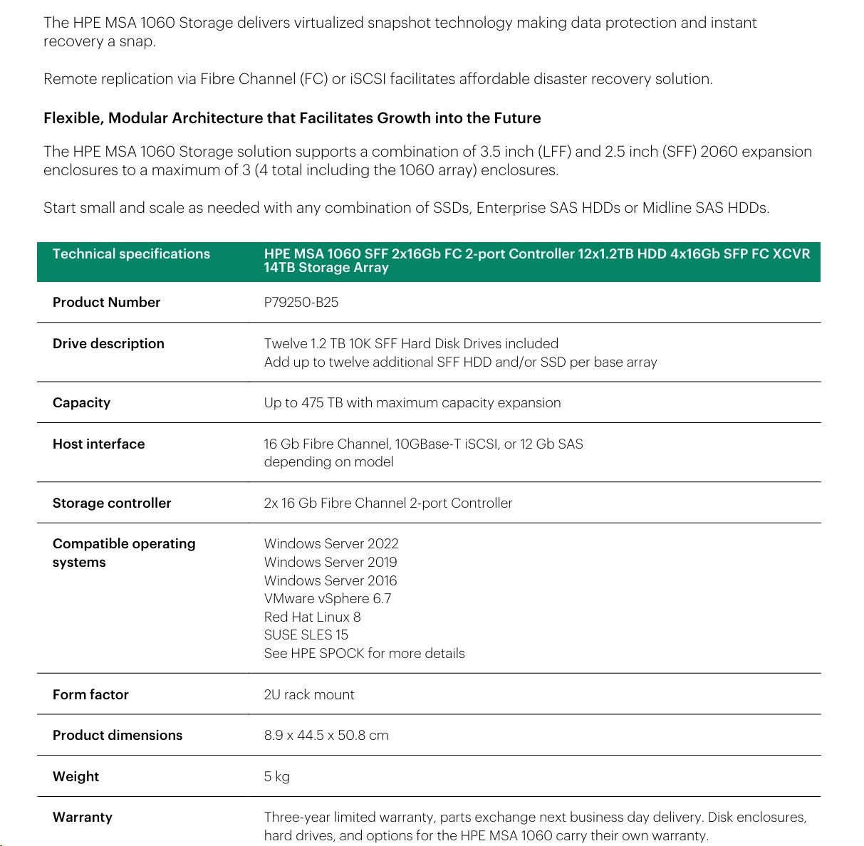 HPE MSA 1060 SFF 2x16Gb FC 2-port Controller 12x1.2TB HDD 4x16Gb SFP FC XCVR 14TB Storage Array Smart Choice