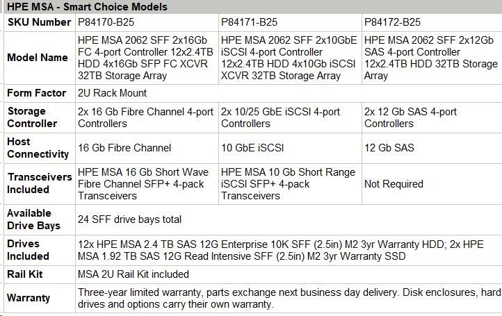 HPE MSA 2062 SFF 2x16Gb FC 4-port Controller 12x2.4TB HDD 4x16Gb SFP FC XCVR 32TB Storage Array Smart Choice