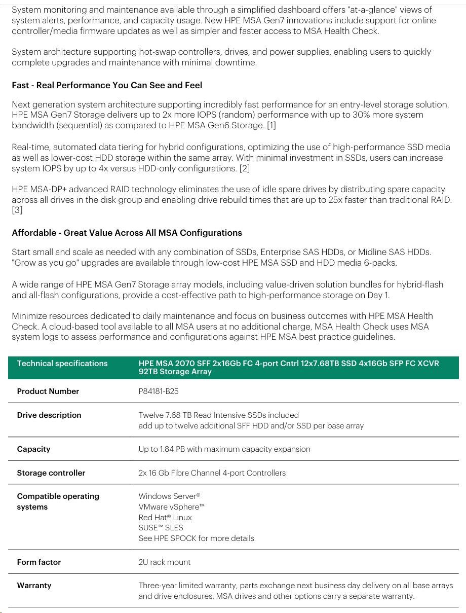 HPE MSA 2070 SFF 2x16Gb FC 4-port Controller 12x7.68TB SSD 4x16Gb SFP FC XCVR 92TB Storage Array Smart Choice