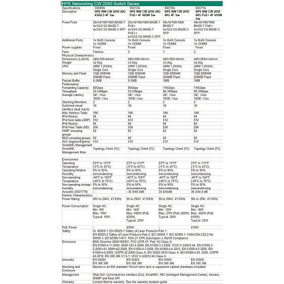 HPE Networking CW 2050 20p 10/100/1000BASE-T 4p Smart Rate 1/2.5GbE 4p SFP 1G/2.5G Switch.