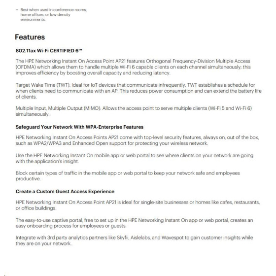 HPE Aruba Instant On AP21 (RW) Dual Radio 2x2 Wi-Fi 6 Access Point 5 Pack (+ 5 Mount Brackets)