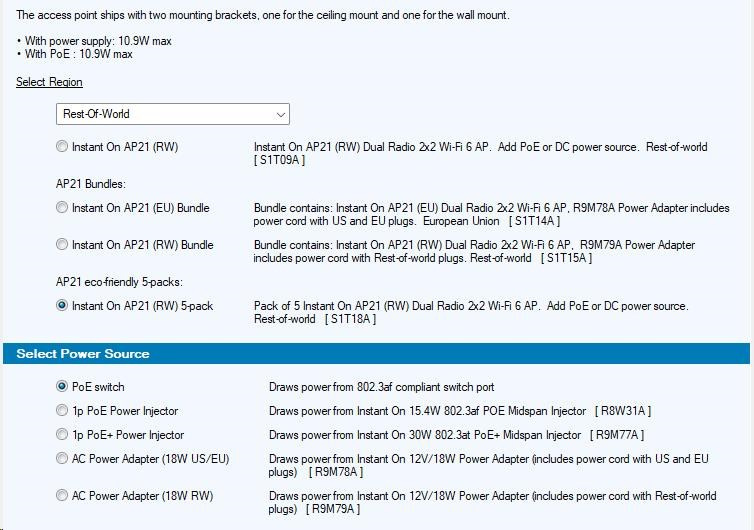 HPE Aruba Instant On AP21 (RW) Dual Radio 2x2 Wi-Fi 6 Access Point 5 Pack (+ 5 Mount Brackets)