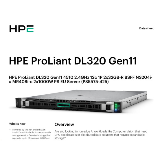 HPE PL DL320g11 4510 (2.4/12C) 2x32G (p64706) NS204(2x480) MR408i-o 8SFF 2x1000W 2p1G Smart Choice.