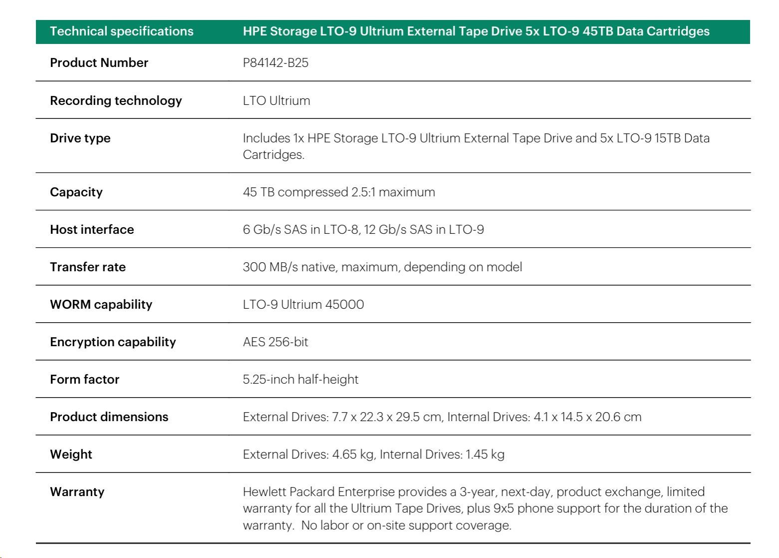 HPE Storage LTO-9 Ultrium External Tape Drive 5x LTO-9 45TB Data Cartridges