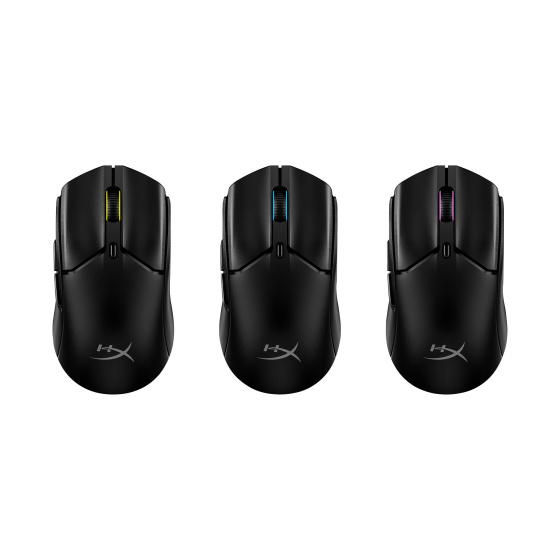 Obsah balenia | Myš HyperX Pulsefire Haste 2 Mini Wireless, uchopenia HyperX, spodné plôšky s nízkym trením, kábel USB-C na USB-A, bezdrôtový hardvérový kľúč USB, predlžovací adaptér USB, stručná úvodná príručka. |