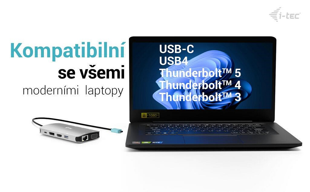 Dokovací stanice je kompatibilní s širokou škálou zařízení včetně notebooků a tabletů s USB-C, USB4 nebo Thunderbolt“ rozhraním.
