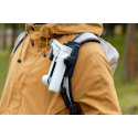 Držiak na upevnenie Flow 2 Pro na batoh. Bezpečnostná západka zabezpečuje pevné uchopenie. Kompatibilný s rôznymi šírkami popruhov, s protisklzovým silikonovým polstrovaním pre stabilitu. Popis produktu bol preložený pomocou umelej inteligencie a môže obsahovať nepresnosti.
