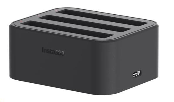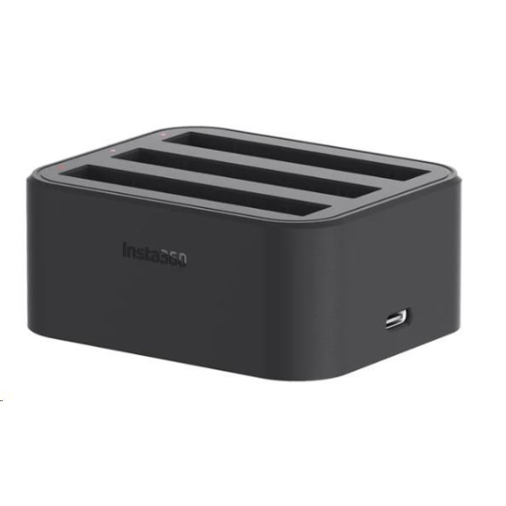 Nabíječ pro inteligentní akumulátory Insta360 ONE X2. Nabíječem lze nabíjet tři akumulátory současně..