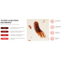 - Klinicky overená účinnosť: Likviduje viac ako 99 % baktérií Propionibacterium acnes, znižuje kožný maz o 56 % za 3 dni a zmenšuje objem akné o 63 % za 7 dní.