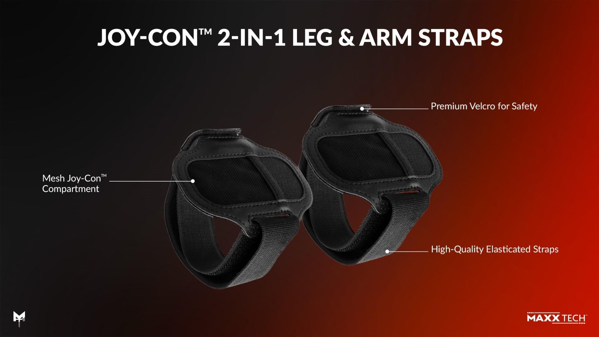 2x 2v1 popruhy na ruce a nohy – lze je nastavit pro všechny věkové kategorie, aby vám ovladač Joy-Con™ pevně seděl