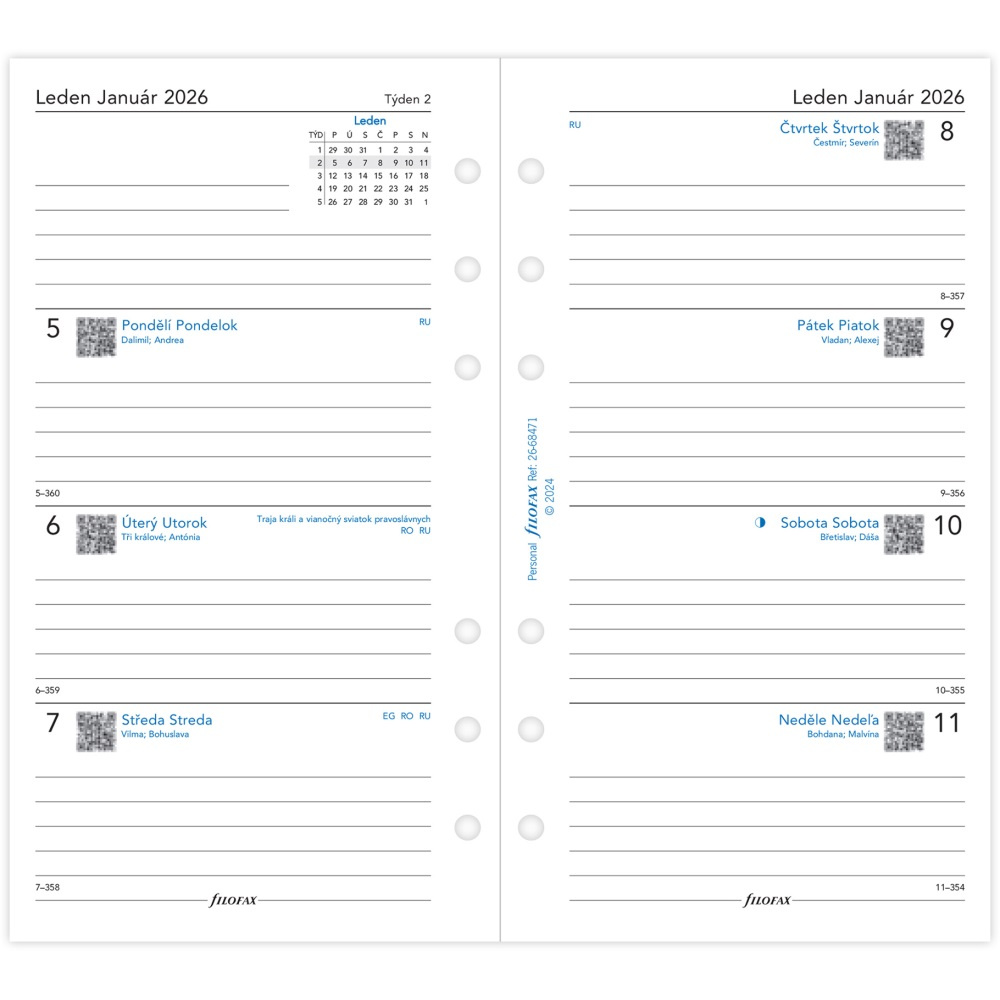 Popis Kalendár 2026 Filofax osobný A5 týždeň /2 strany /ČJ+SJ /linajkový