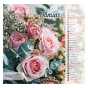 Formát: 320 x 310 mm. Vario špirála, natieraný lesklý papier, 7 listov. Cena za 1 ks výrobku. Očarujúci nástenný kalendár, ktorý poteší oko krásou, farebnosťou a dokonalosťou kvetov a dušu - krátkym citátom. Obsahuje mesačné kalendárium so slovenskými a českými menami a štátnymi sviatkami. Možnosť potlače na presah podložky (320 x 40 mm).