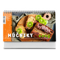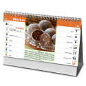 Stolový dvojtýždenný kalendár, s listami zo 115g natieraného papiera, viazaný kovovou bielou špirálou. Rozmer: 234x133 mm.