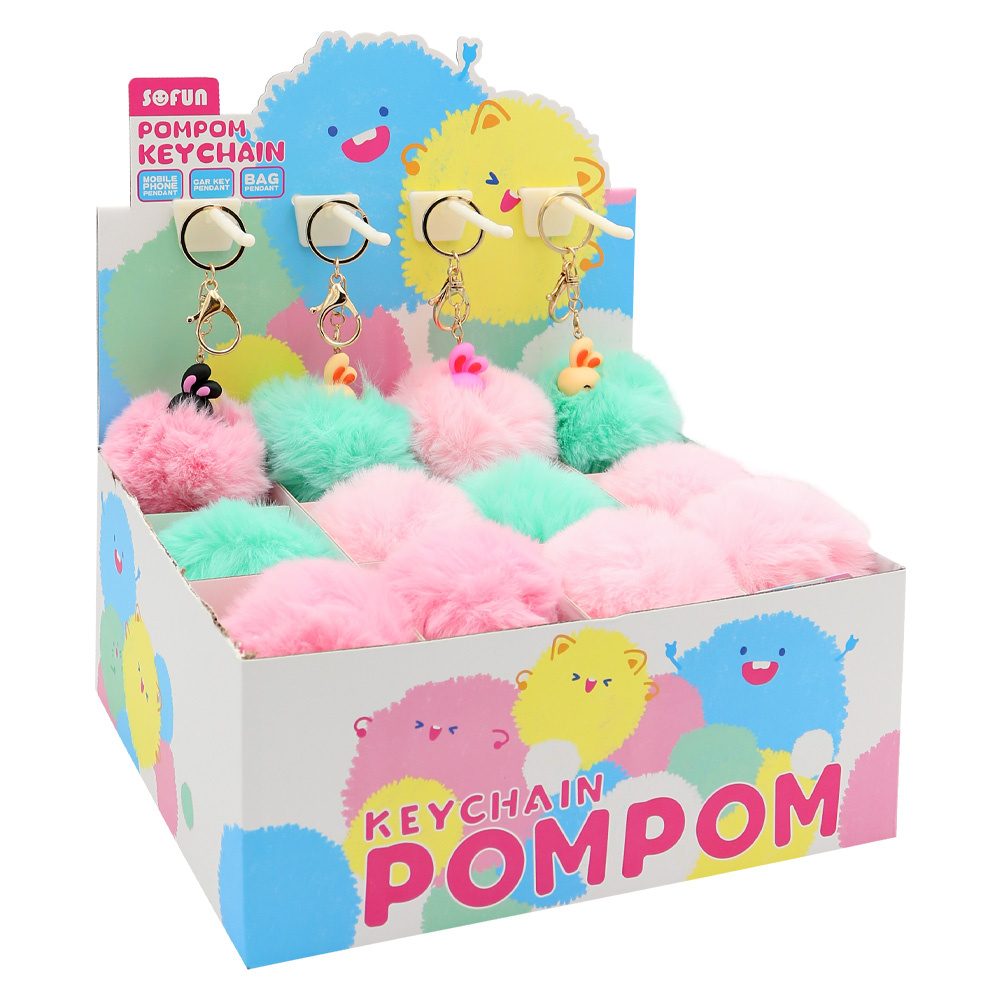 Prívesok s hebučkým PomPom a gumeným zajačikom (2 farby).