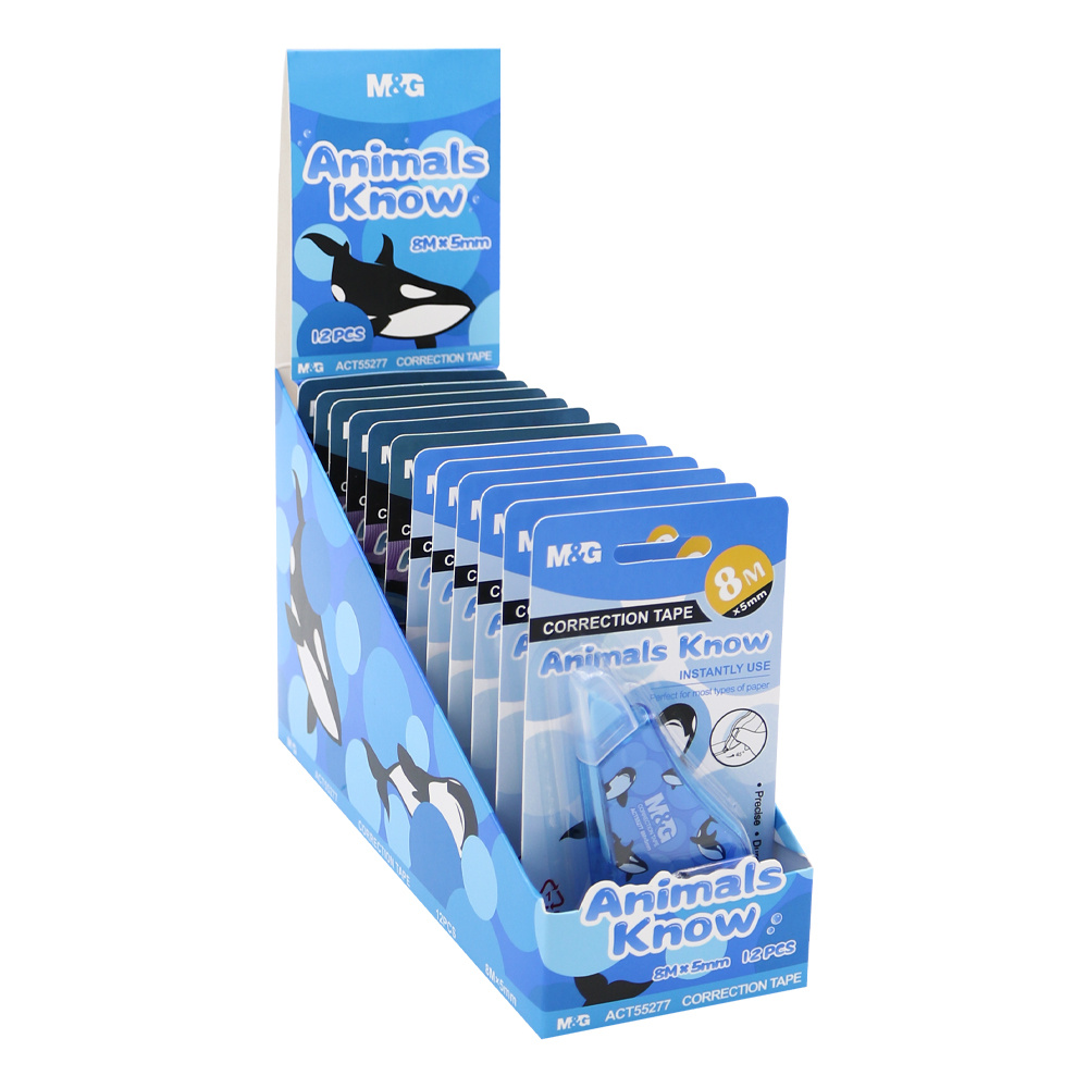 Korekčný strojček s aplikačným hrotom, umožňujúcim pohodlné a čisté nanášanie suchého korekčného filmu.