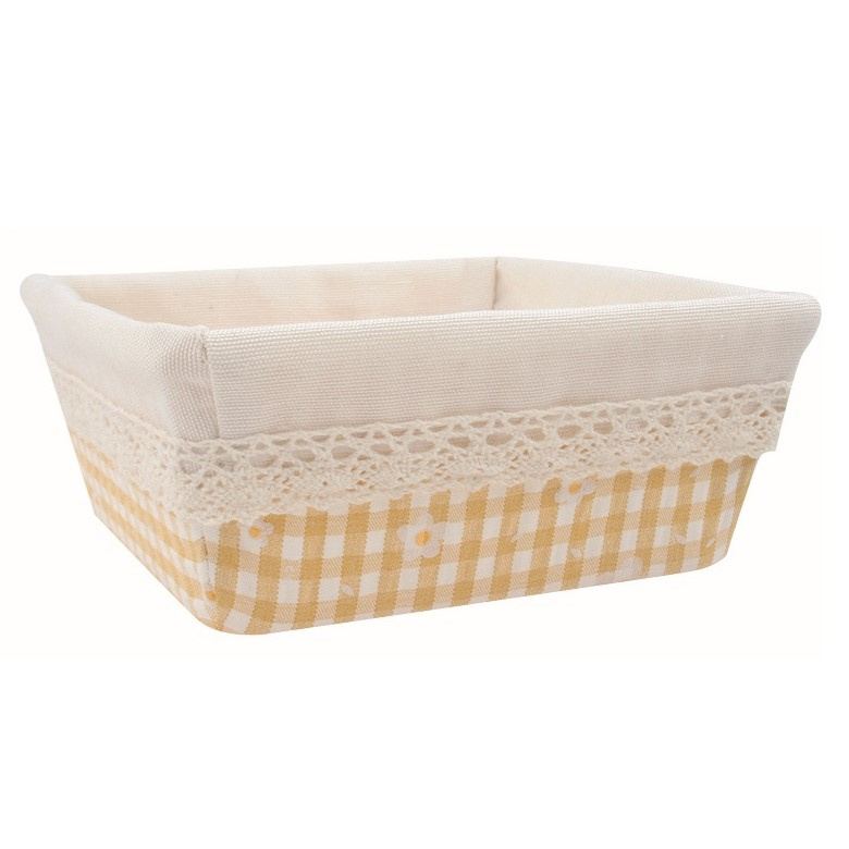 Košík látkový svetlo žltý s kvetinami 19 x 7 x 19 cm