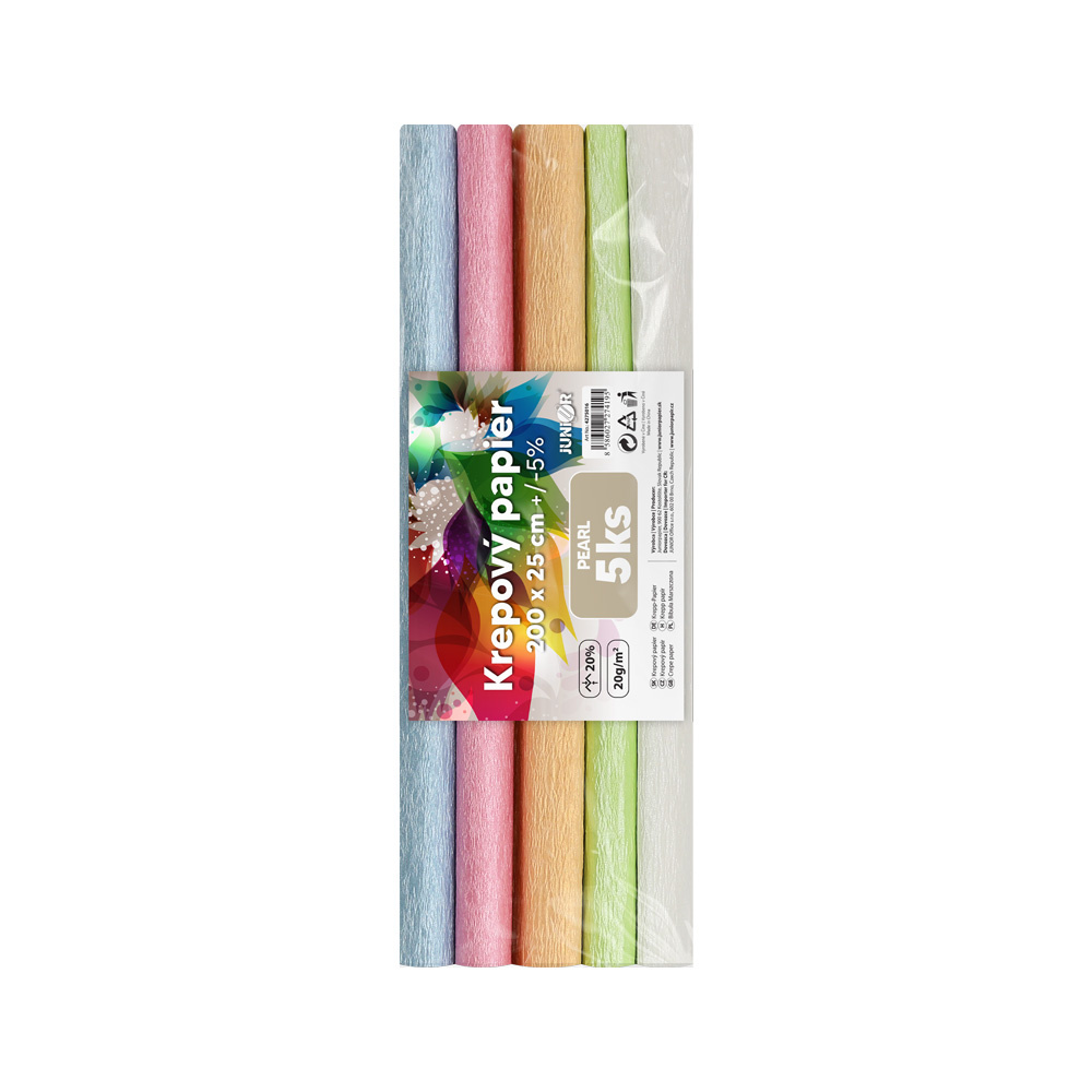 Krepový papier JUNIOR 200x25 cm PEARL (sada 5 ks)