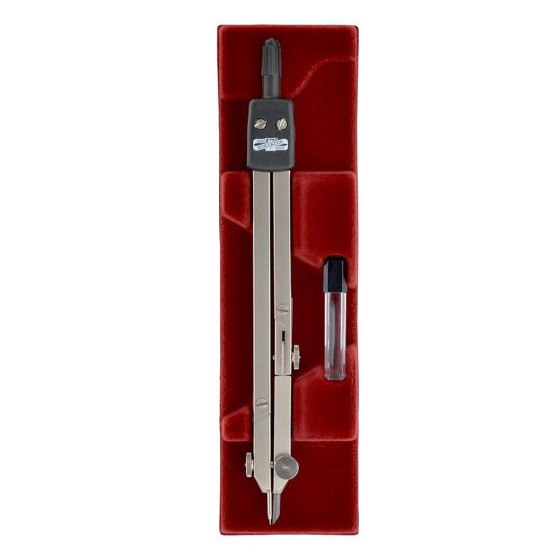 Kružidlo kovové s náhradnou tuhou v plast. obale. Na rysovanie kružníc v rozsahu 3 - 400 mm. Dĺžka k