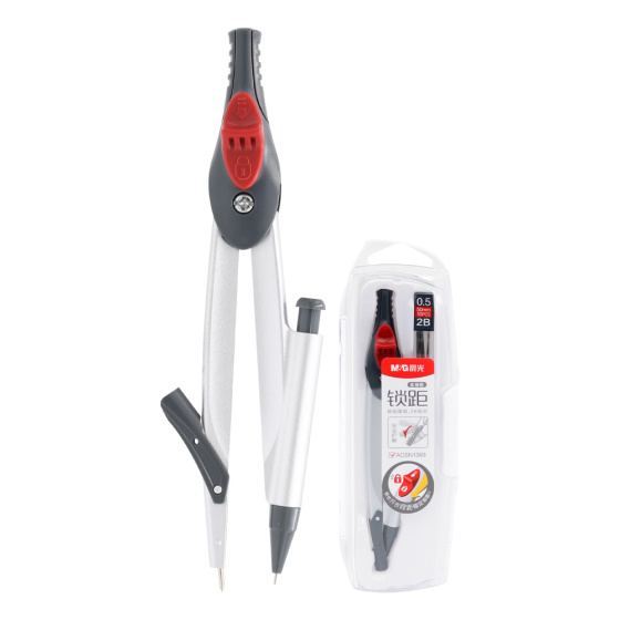Kružidlo od značky M&G s kovovým telom a plastovým úchopom. V balení sú zahrnuté aj náhradné náplne 0,5 mm 2B.