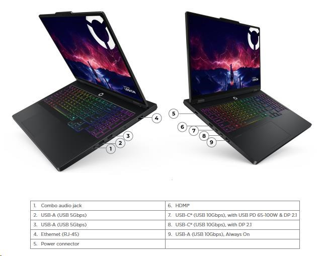 Popis LENOVO NTB Legion Pro 5 16AFR10 - Ryzen 9 9955HX,16" WQXGA OLED,32GB,1TSSD,HDMI,RTX 5070 8GB,W11H,3Y CC